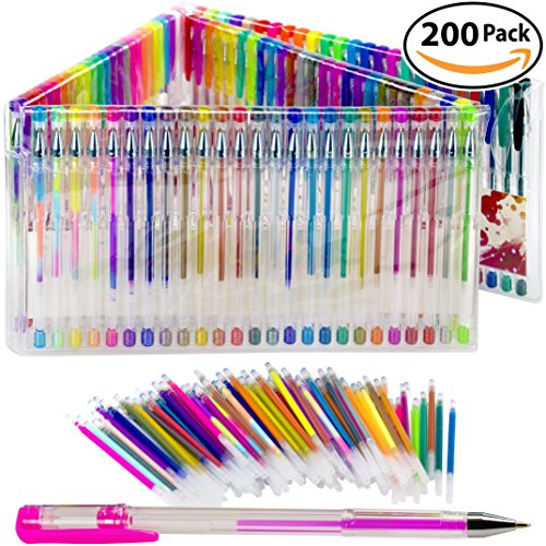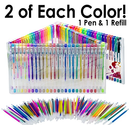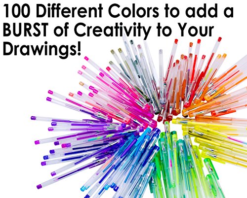 Gel Pen Variety Pack for Adult Coloring Books. Durable, Non-Toxic Set of 100 Glitter, Metallic, Classic, Neon, Swirl and Pastel Colored Pens and Refills. Great Christmas or Birthday Gift