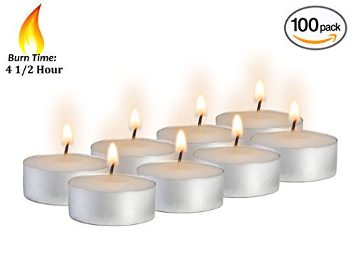Tea Light Candles - 100 Bulk Pack - White Unscented Travel, Centerpiece, Decorative Candle - 4.5 Hour Burn Time - Pressed Wax - By Ner Mitzvah