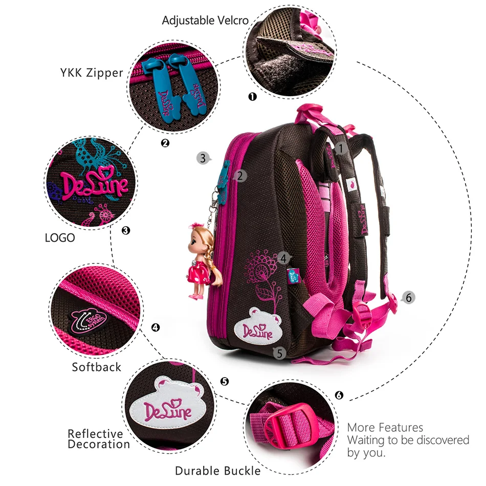 Product information: 2018 Delune newOrthopedic Children School Bags