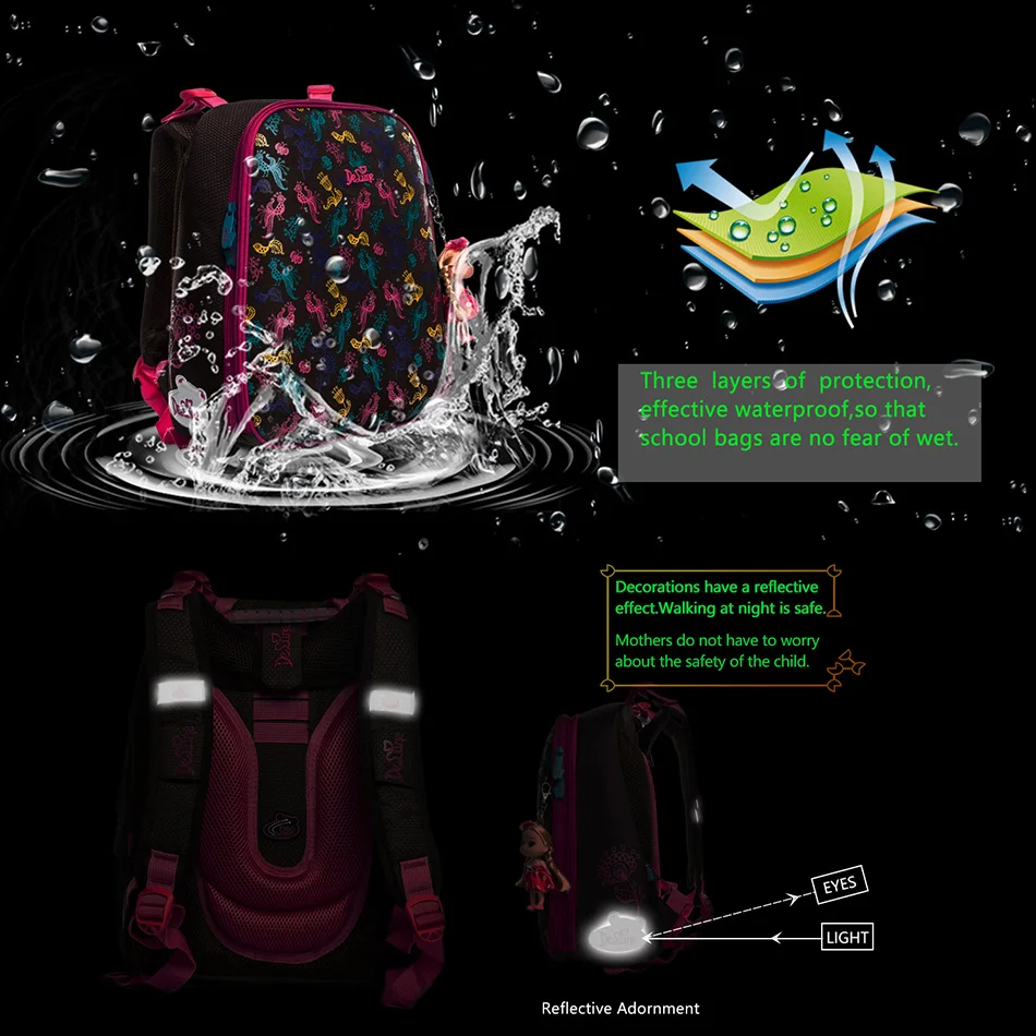 DELUNE Brand 2018 New Orthopedic Children School Bags Grade 1-3 Kids Student Girls Cartoon Waterproof School Backpack Book Bags: