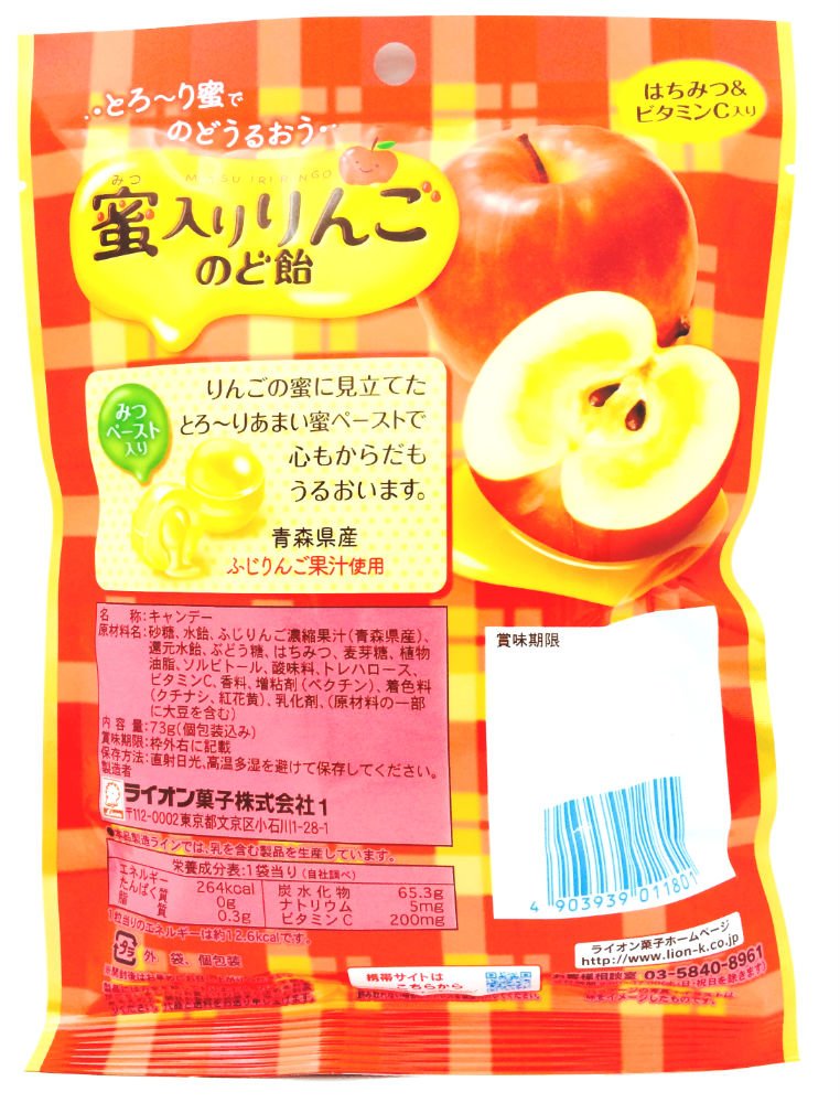 It is a candy of apple with nice honey using "Fujirigiri" fruit juice from Aomori Prefecture.
