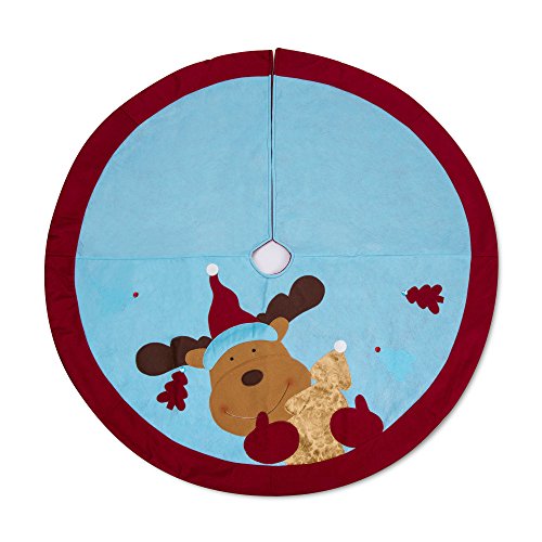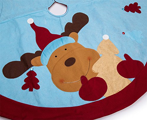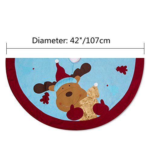 SANNO 42" Christmas Tree Skirt Holiday Reindeer Decoration,Blue with Red Edge