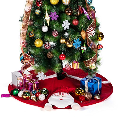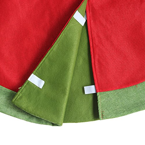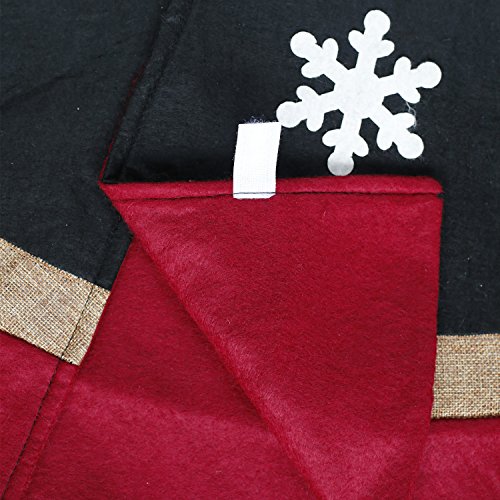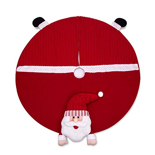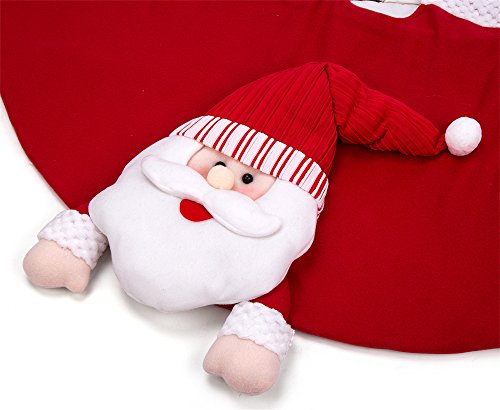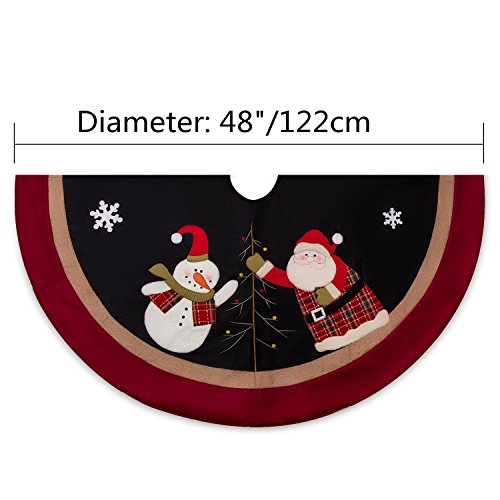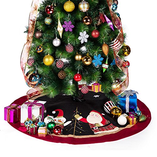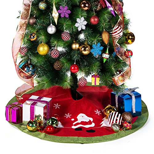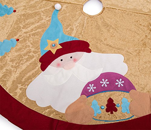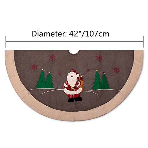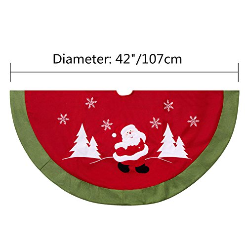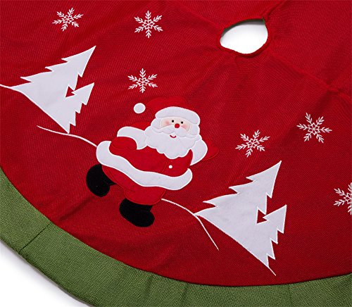SANNO 42" Christmas Tree Skirt with Woodland Collection, Santa Claus & Embroidered Snowflakes Characters decorations, Red with Green Edge