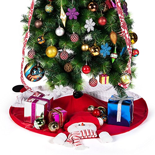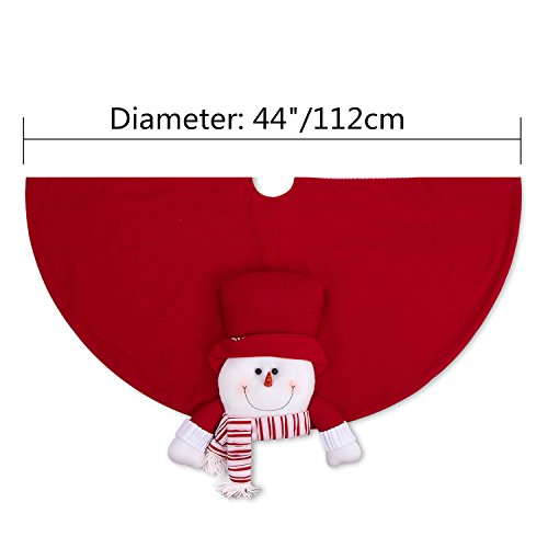 SANNO 42" Snowman Christmas Tree Skirt Round Holiday Decorations Skirts, Red/WhiteNonwovens
