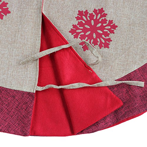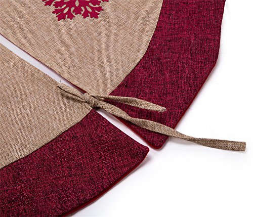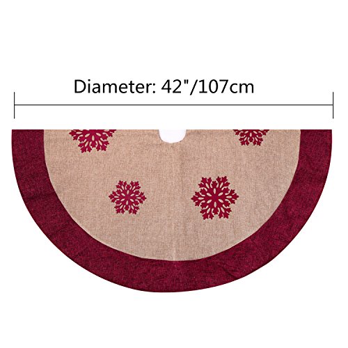 SANNO 42" Snowflakes Christmas Tree Skirt Burlap Rustic Xmas tree Decorations Skirts Holiday Ornaments, Beige with Red Edge