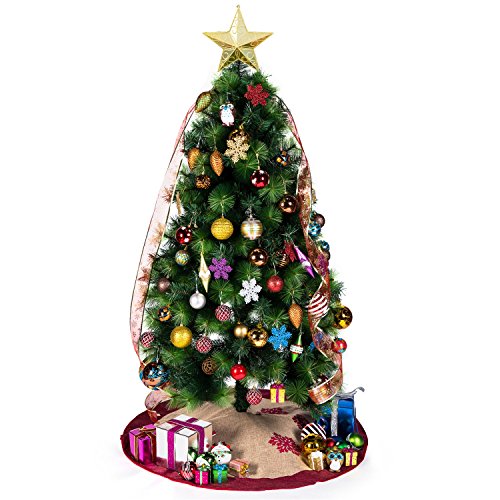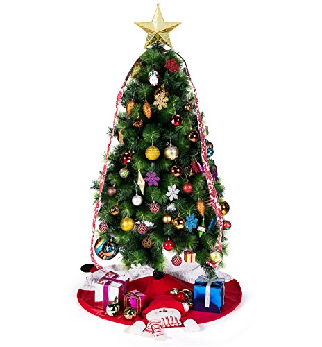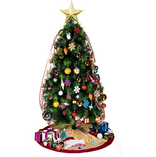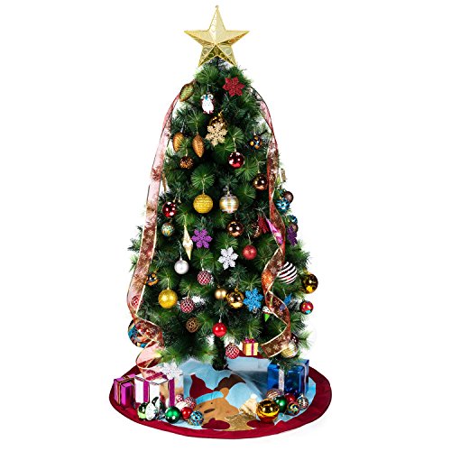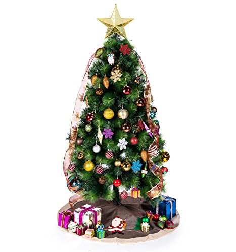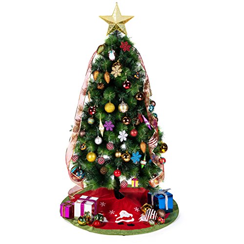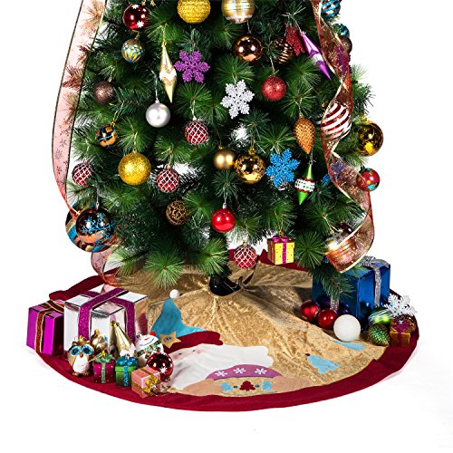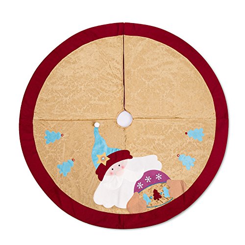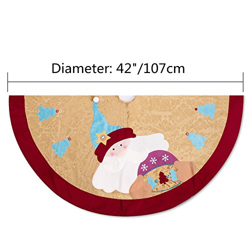 SANNO 42" Christmas Tree Skirt Santa Claus Blue Woodland Collection and Santa Holiday Decorations,Yellow Non-woven with Red Edge