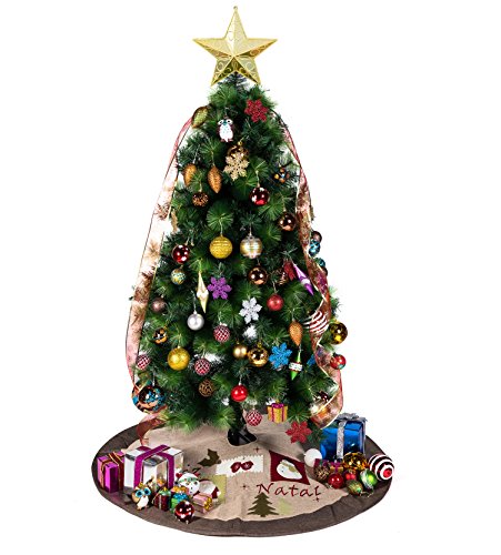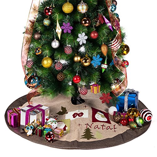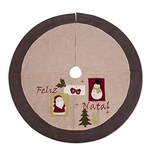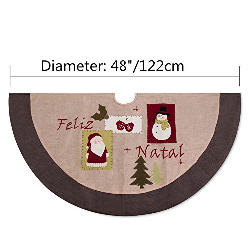 SANNO 48" Feliz Natal Christmas Tree Skirt with Woodland Collection, Santa, Snowman Rustic Festival Decorations, Beige with Grey Edge