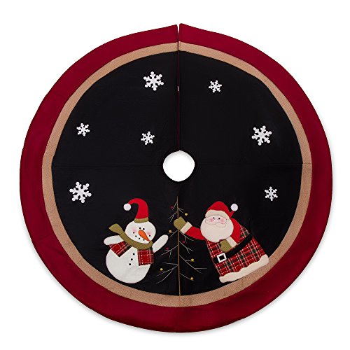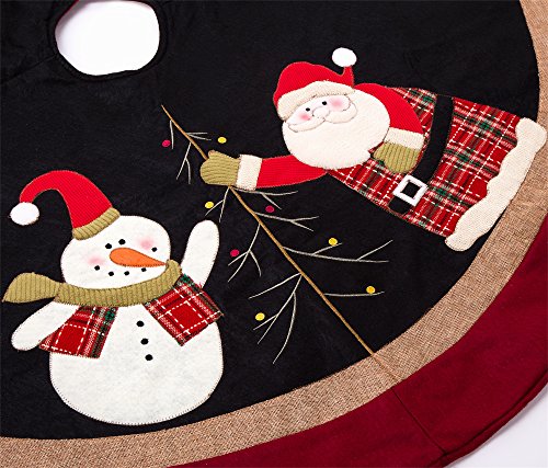 SANNO 48" Christmas Tree Skirt with Santa, Sonwman, Snowflake Xmas Non-woven Decorations,Black Sky with Double Edges