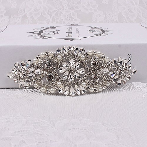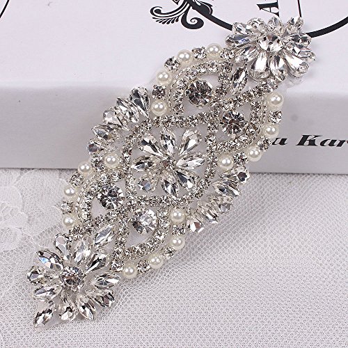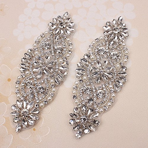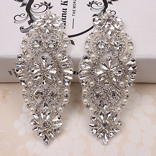 (2pieces) Fashion Handmade Sewing Crystal Rhinestone Applique for Wedding Belts or Headpiece Bridal Garters-Silver(5.3"1.9")