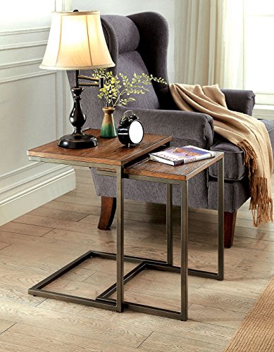 -. Title : Furniture of America CM-AC159 Zia Medium Weathered Oak Nesting Table End/Side/Nesting
