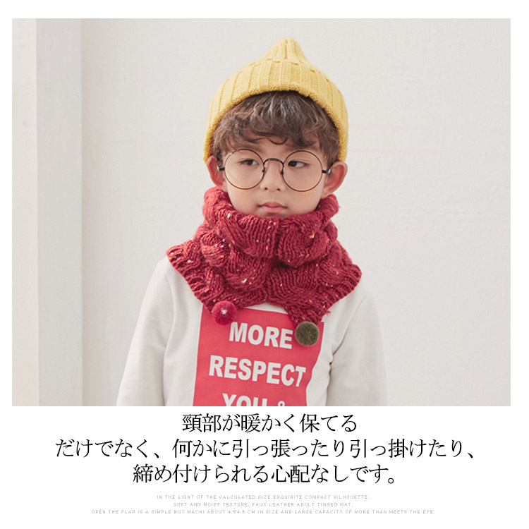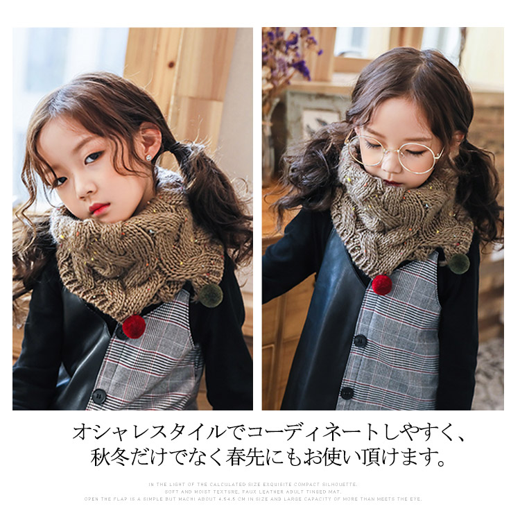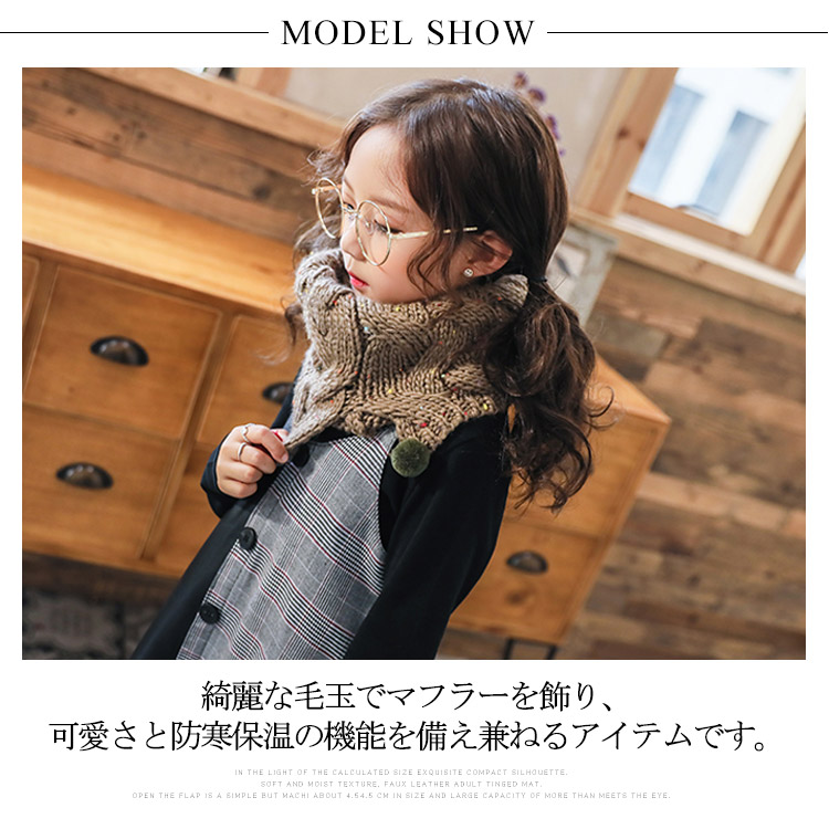 | 柔らかくて肌触りいいニット素材を使用してしっかりと作られた子供用のマフラーです。綺麗な毛玉でマフラーを飾り、可愛さと防寒保温の機能を備え兼ねるアイテムです。オシャレスタイルでコーディネートしやすく、秋冬だけでなく春先にもお使い頂けます。頸部が暖かく保てるだけでなく、何かに引っ張ったり引っ掛けたり、締め付けられる心配なしです。 | |