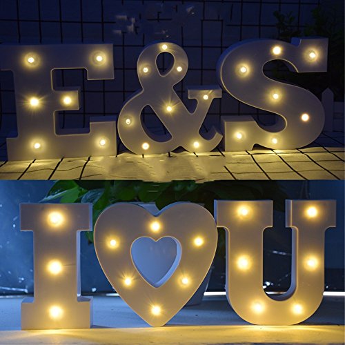 - ABCDEFGHIJKLMNOPQRSTUVWXYZ & 27 alphabetic character LED lights,Can spell out any name or phrase with these fabulous LED Light Up alphabet letters! such as for arbitrary combination into I LOVE U, HOME, MARRY ME, U&M, etc.