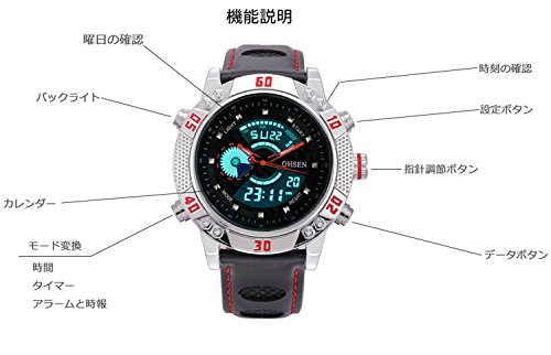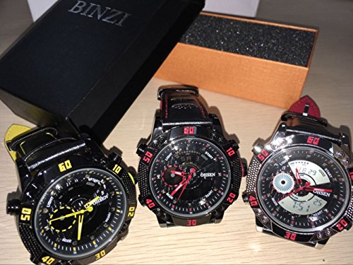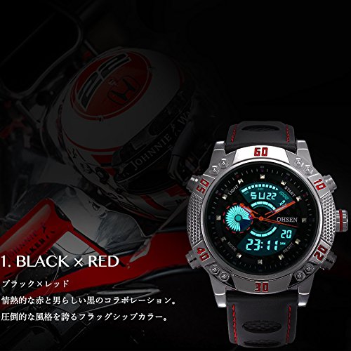 OHSEN BINZI 맨즈 쿼츠 스포츠 가죽 밴드 디지털 표시 장치 방수 전자 손목시계