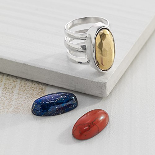 -. Feature : Mix it up with the P.R.Imary Colors Ring in sterling silver, which features three interchangeable stones in golden brass, rosy howlite, and navy lapis, allowing you to swap stones based on your outfit / THE NEW WEST: Add a piece of southwestern inspired jewelry to your ensemble and you'll feel like you're instantly transported to an Albuquerque craft fair or taking in the Phoenix architecture. Southwestern-inspired jewelry is known for its Navajo or Native American patterns, fringes, tassels, warm and earthy colors. The jewelry is crafted in sterling silver with the occasional brass and copper accents, and is accompanied by turquoise, howlite, lapis, agate, coral and other semiprecious stones. / HOWLITE: Sometimes nicknamed the "stone of awareness," howlite is believed to absorb one's own anger - or protect from another's anger toward you LAPIS-LAZULI: Because of the mineral combination in this naturally occurring stone, each Lapis contains its unique, golden fleck / BRASS & STERLING SILVER: The combination of copper and zinc gives brass a soft, yellow glow and its malleable nature makes it an artisan favorite; when this golden-hued metal is used alongside Silpada's signature metal of sterling silver, it creates breathtaking antiqued or mixed-metal looks / Ring face measures 1 inch in width