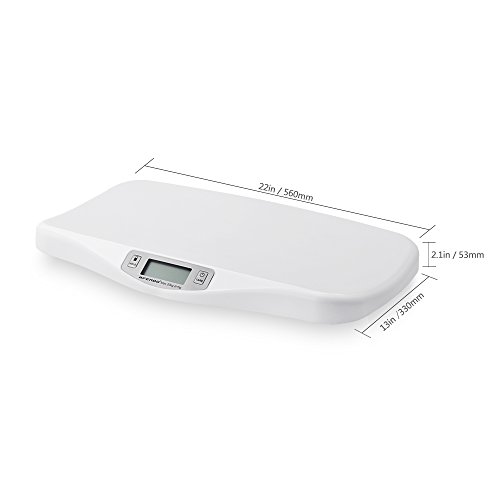 With a 2.79 x 1.1 inch large LCD readout which is easy to read at any angle and the hold feature allows you to remove the baby from the scale while keeping the weight measurement lit for an additional 20 seconds.