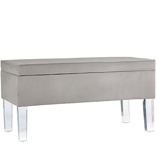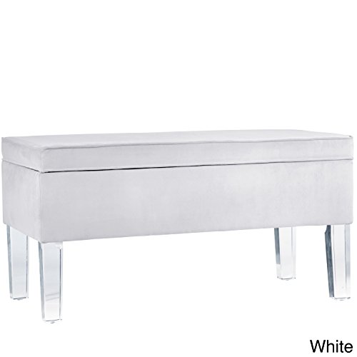 -. Title : Skyline Furniture Velvet Fabric Storage Bench in Velvet White