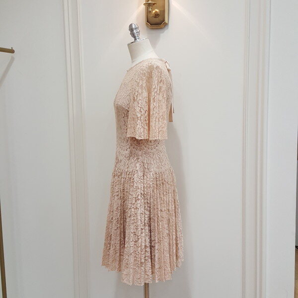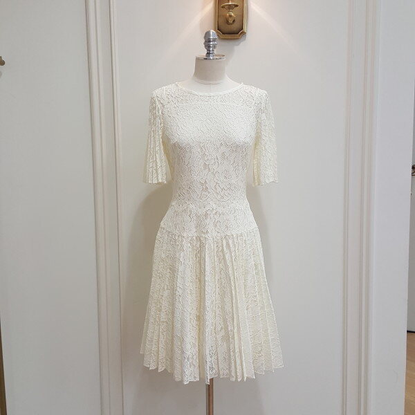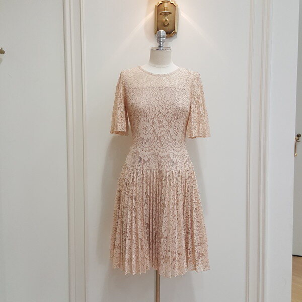 트렌디하게 보여지고 있는 레이스플리츠소재의 페미닌한 원피스
