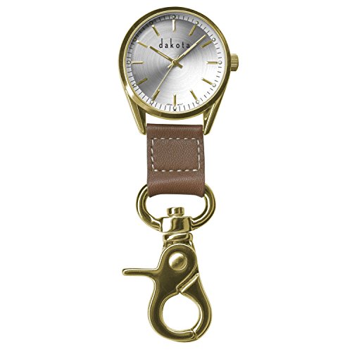 Dakota Classic Dress Clip Watch-Gold Case/Leather Fob