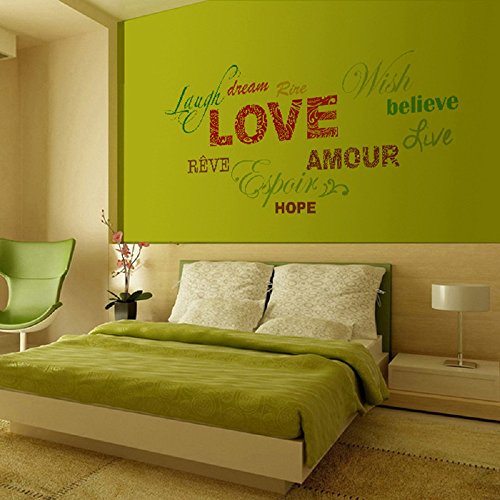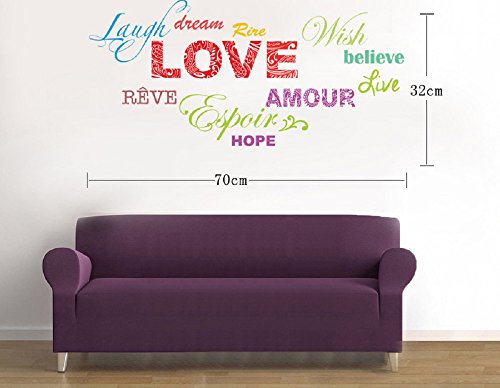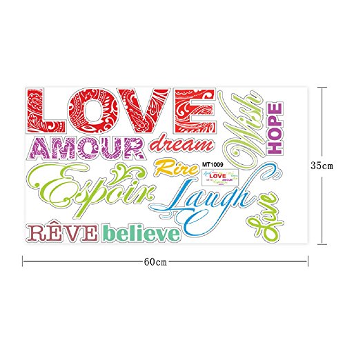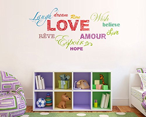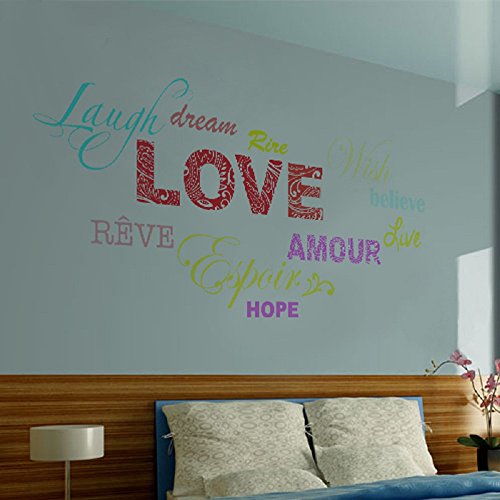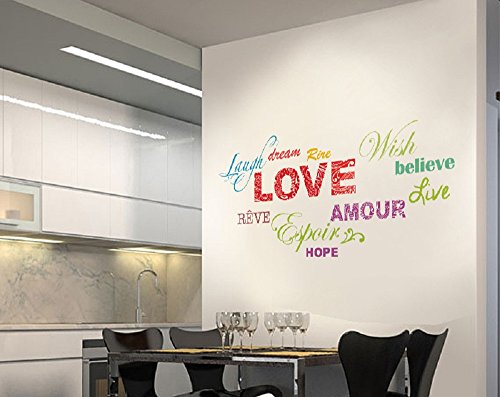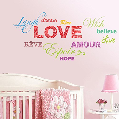 Amaonm Removable Colorful Quotes Love, Laugh, Dream, Hope Wall Stickers DIY Rainbow Lettering PVC home art Decor Decals Wallpaper for Kids Nursery Room Bedroom Classroom Offices Living room
