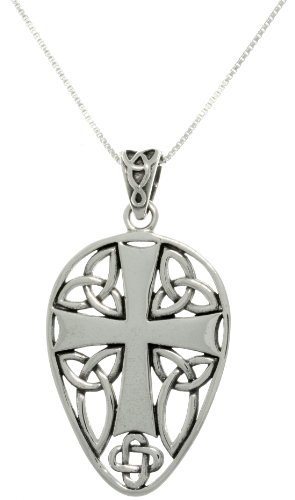 -. Feature : Metal: .925 Sterling Silver; Finish: High Polish, Celtic Cross Shield Necklace with Trinity Knots / Pendant dimensions: 20.5 mm wide x 38.5 mm long / Necklace dimensions: 0.8 mm wide x 18 inches long / Peter Stone© Jewelry Designs are exclusive and protected by Copyright Laws. / Complimentary gift box included, ready for gift giving
