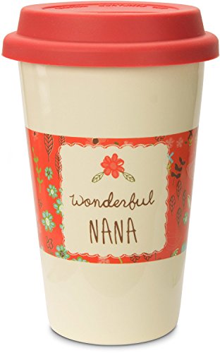 Pavilion Gift Company 54010 "A Mother's Love-Wonderful Nana" Floral Stoneware Travel Mug, Pink, 12 oz