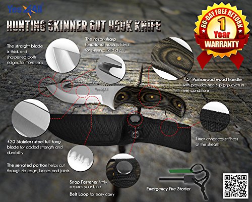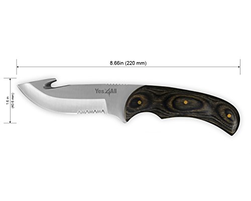 Yes4All 9" Tactical Hunting Survival Knife Skinner Gut Hook Fixed Blade + Nylon Sheath MH-H079