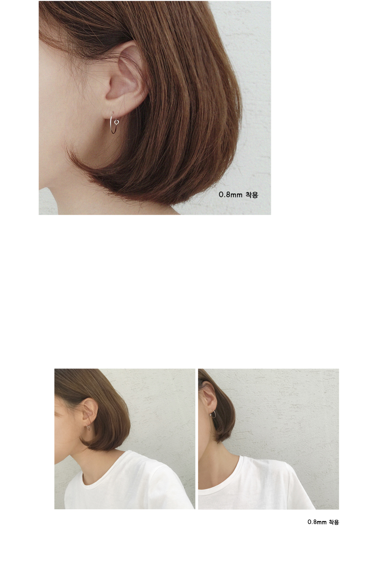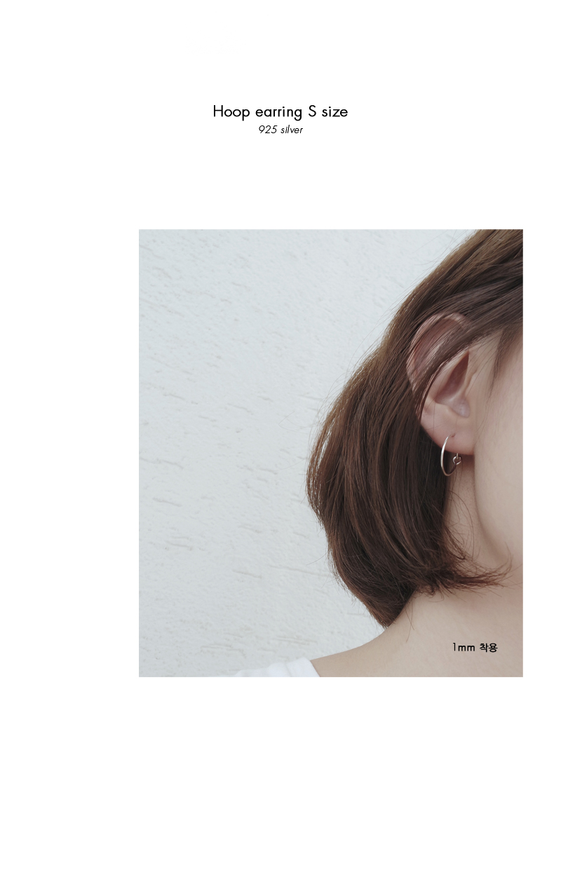 | 심플한 링 귀걸이입니다. 간단한 링 이어링이지만, 잠금장치도 라인하트만의 포인트가 될 수 있도록 제작했습니다. 착용사진처럼 잠금부분을 숨기지 않고 드러내서 착용하시는 걸 추천해드립니다. 사이즈는 취향대로 선택하실 수 있게 s, m, l 로 준비했습니다. S사이즈는 지름 13mm로 데일리용으로 손색없는 제품입니다. 링 두께는 0.8mm와 1mm 두가지로 제작했으며, 기본 0.8mm는 기본 침 두께와 동일하여 누구나 착용이 가능한 사이즈입니다. 1mm는 귀 뚫은 구멍이 넓어지신 분들이나(피어싱이나 무거운 이어링으로 넓어진 분들) 또는 약간 두툼하게 착용하고 싶으신 분들께 추천해드립니다. 두께차이는 착용사진에서 확인가능합니다. |info.| · material:925 silver · height:13mm |