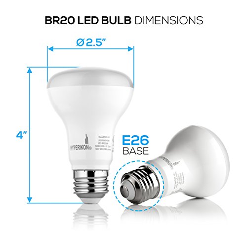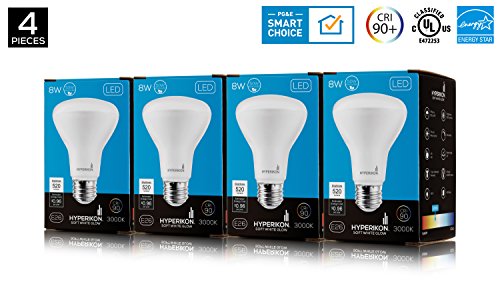 Hyperikon BR20 LED Bulb Dimmable, 8W (50W Equivalent), 3000K (Soft White Glow), CRI 90+, Wide Flood Light Bulb, Medium Base (E26), UL & ENERGY STAR - Great for Kitchen, Family Room, Bathroom (4 Pack)