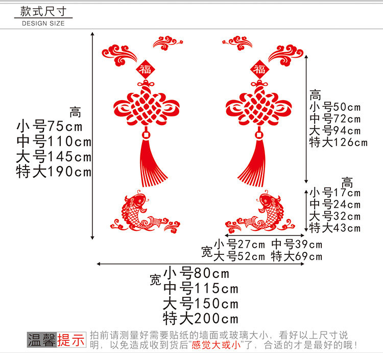 中国结新年平安富贵玻璃门贴纸墙贴新年装饰贴客厅阳台窗户装饰