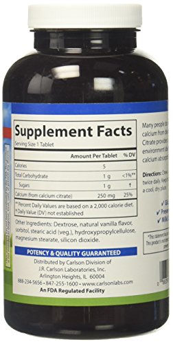 Calcium is required for strong bones and teeth at every stage of life. Healthy calcium intake during childhood develops a solid foundation for healthy bones in the future. Throughout adolescence, the bones grow rapidly, so teens can benefit from increased calcium intake. Calcium is also very important during pregnancy and lactation, as well as when healing from injuries. In later years, the bones can begin to lose some of their sturdiness and strength, so a calcium-rich diet and supplementation become even more important. Chewable Calcium makes getting your daily dose of calcium easy at every age. Each tasty vanilla chewable provides 250 mg of calcium, which supports healthy bones and teeth. Tablets are casein- and milk-free.Feature