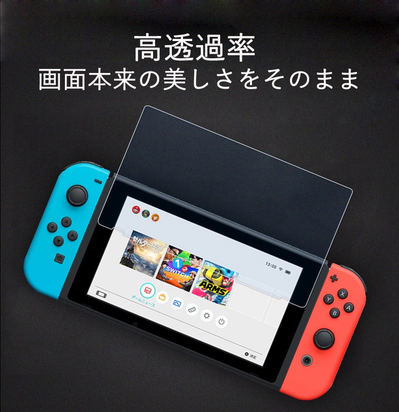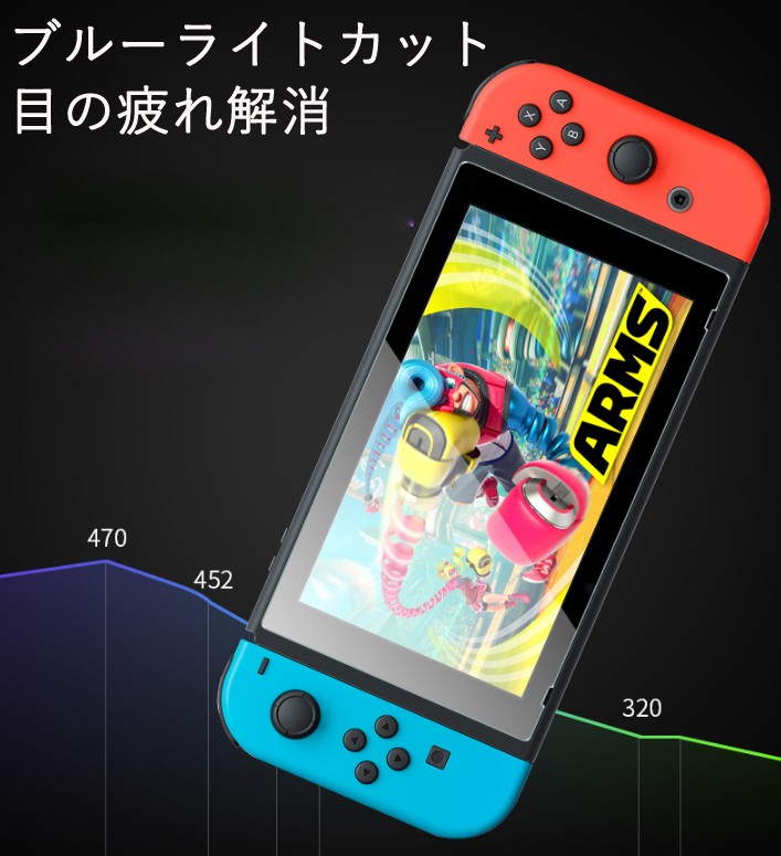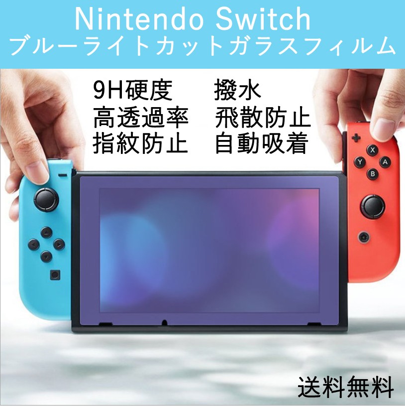 任天堂スイッチ用ブルーライトカット強化ガラスフィルム付属品:アルコールペーパータオル ホコリ除去用シール硬度:9H飛散防止指紋防止撥水汚れにくいラウンドエッジ2.5加工高透過率