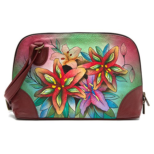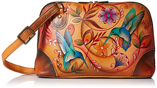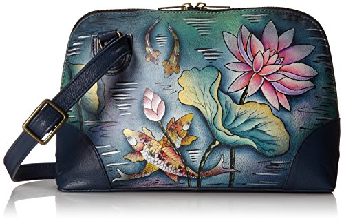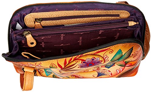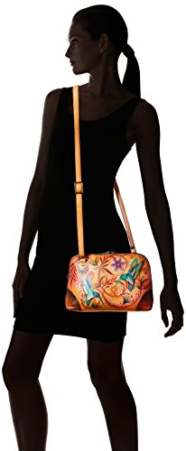 Multi compartment zip around organizer-all round zip entry to main compartment. Inside four full length pockets, one full zippered pocket, zippered wall pocket, two multipurpose pockets and two slip pockets. Rear zippered wall pocket and slip-in cell pocket. Adjustable cross body strap with13.5 inch-27 inch drop. 11 inch x 7.5 inch x 3 inch.