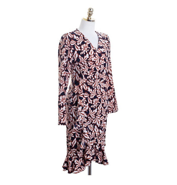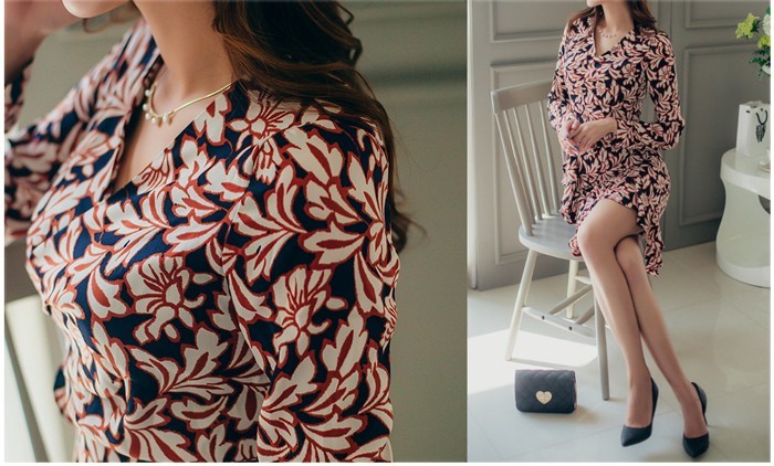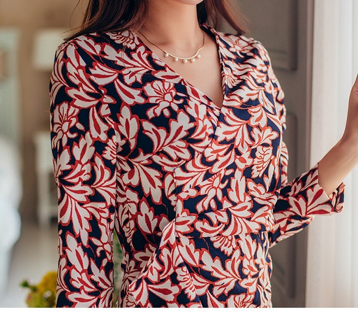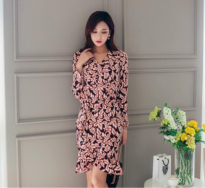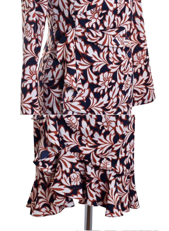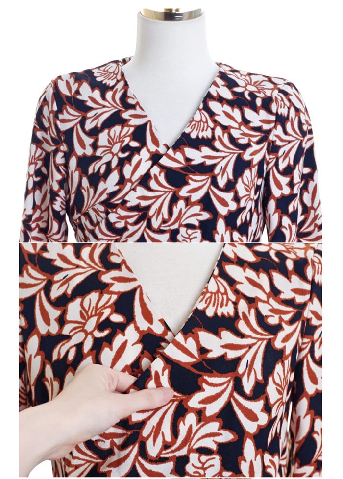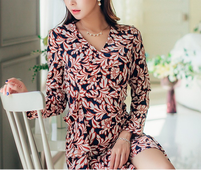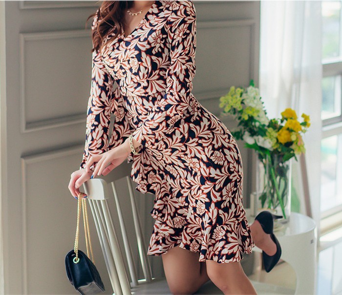 商品名:ワンピース カシュクールワンピース 柄 長袖 ミニ丈