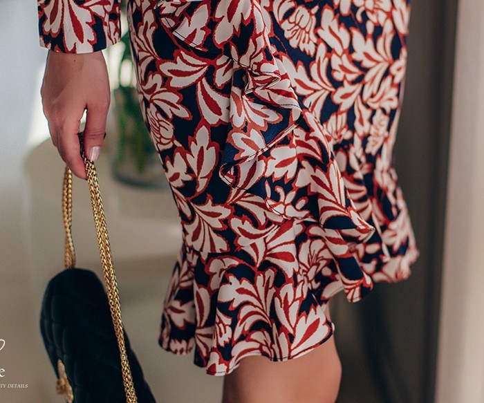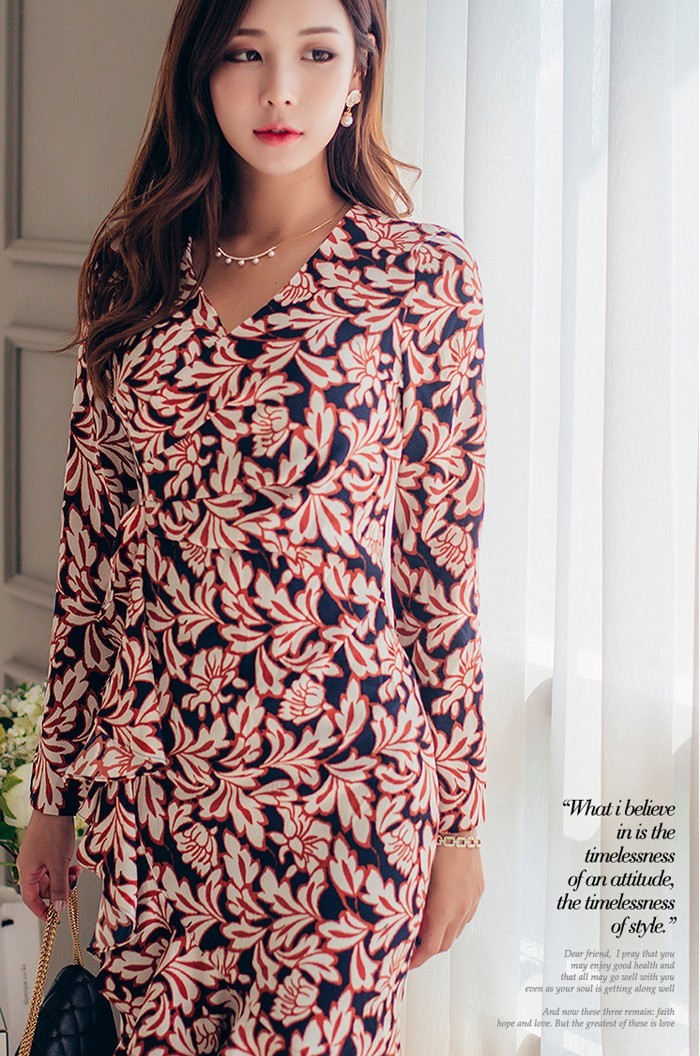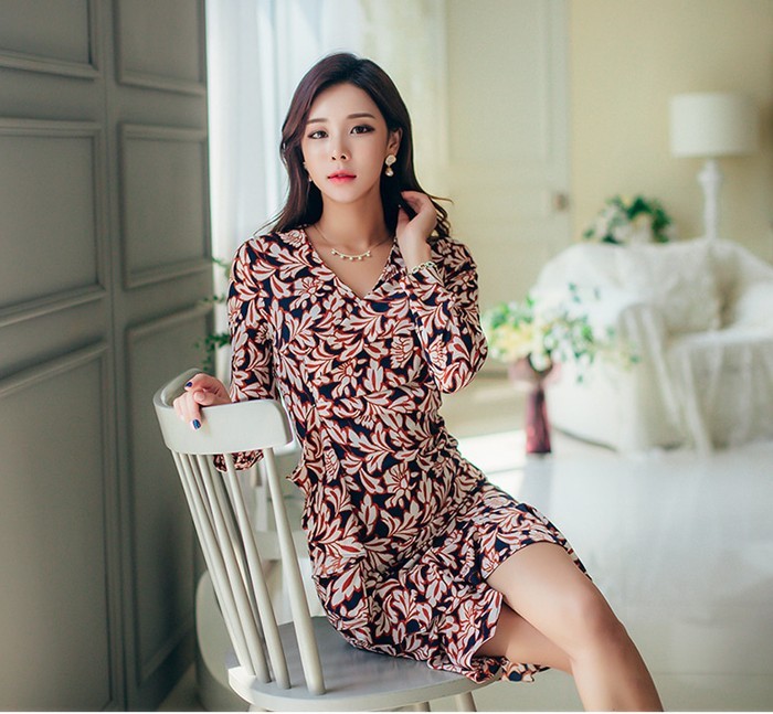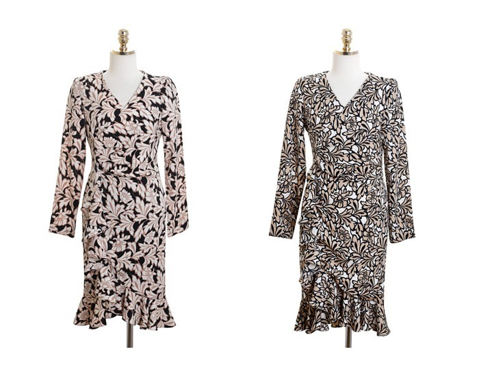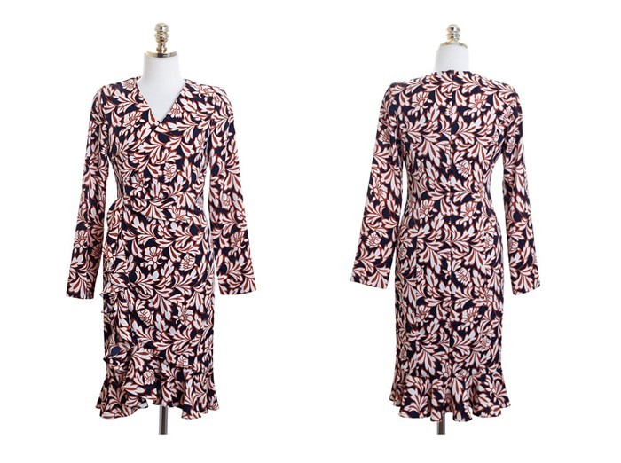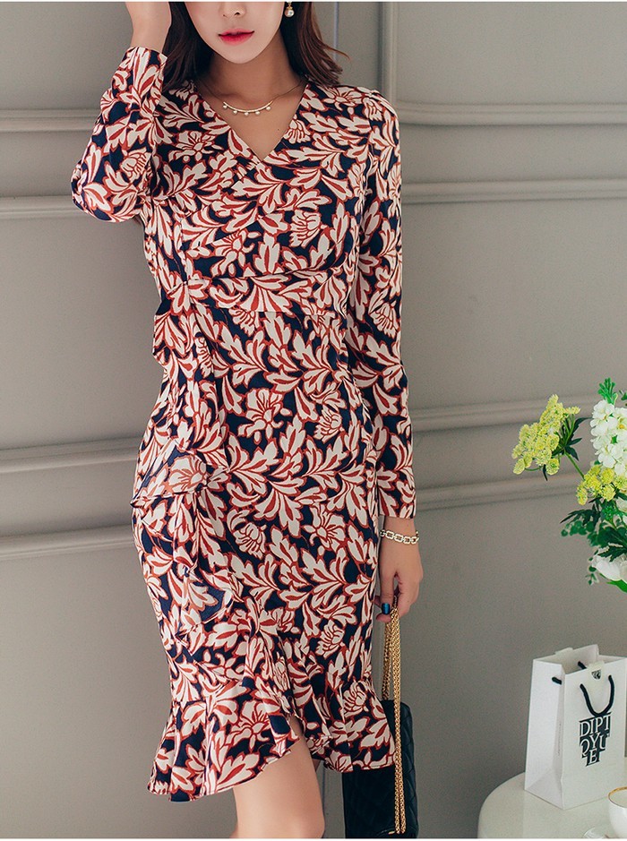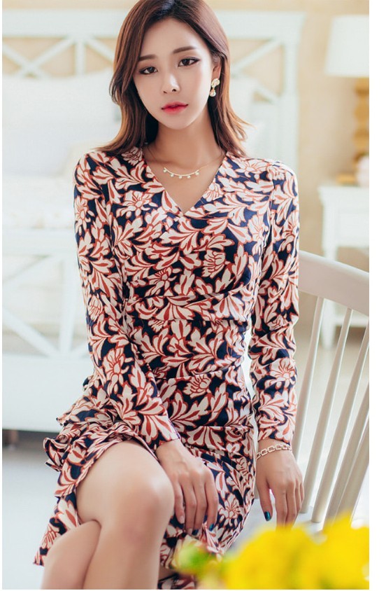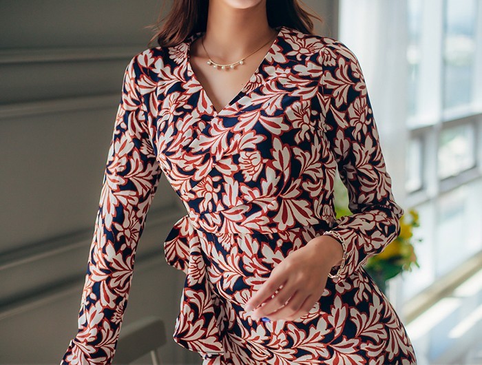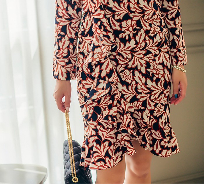 商品名:ワンピース カシュクールワンピース 柄 長袖 ミニ丈