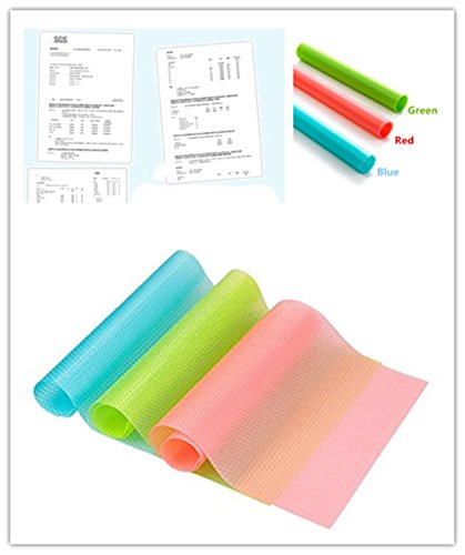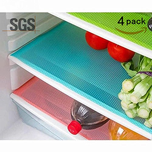 Notice ◆Please measure your refrigerator shelf before ordered to check whether you need to order more. Refrigerator Pads Size: 17 3/4 x 11 3/4 x 1/16 IN / 45*30*0.1cm. ◆Fridge pads you will received are 4 pieces in an OPP bag instead of 4 rolls. ◆Please rinse with water while before first time using to remove dust.