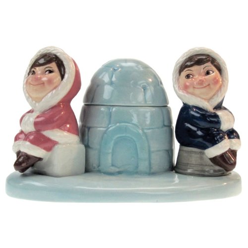 Westland Giftware Mwah Eskimos Magnetic Ceramic Salt and Pepper Shaker with Toothpick Holder Set, 3-Inch
