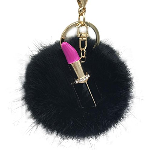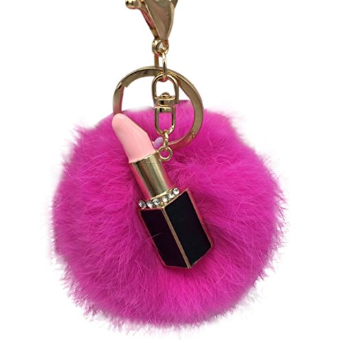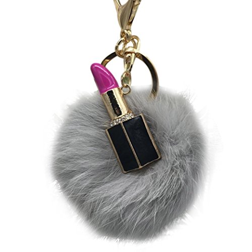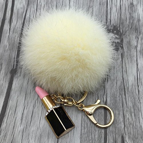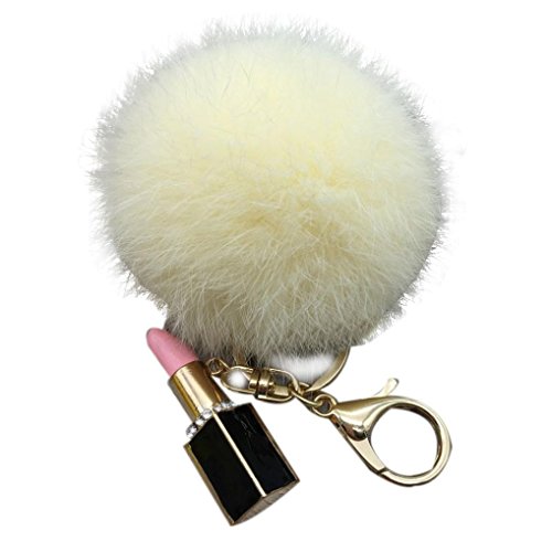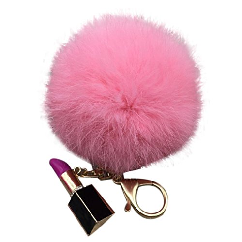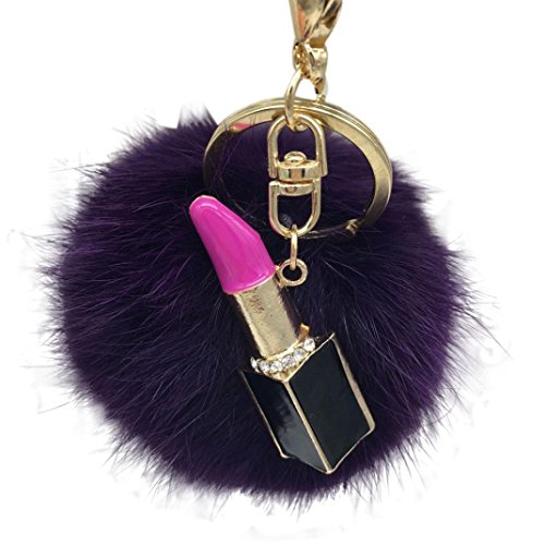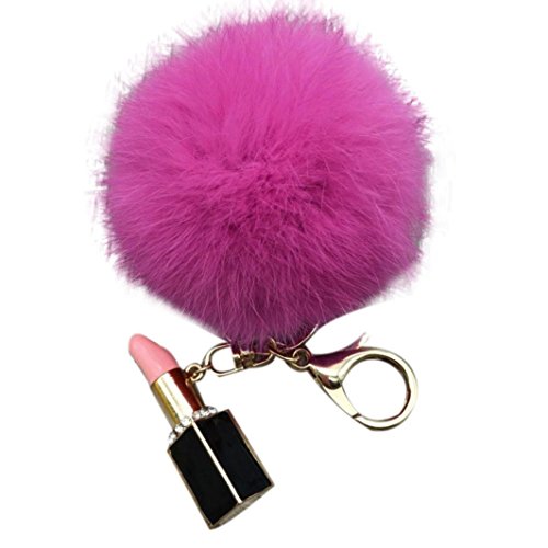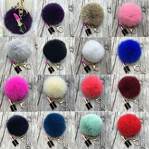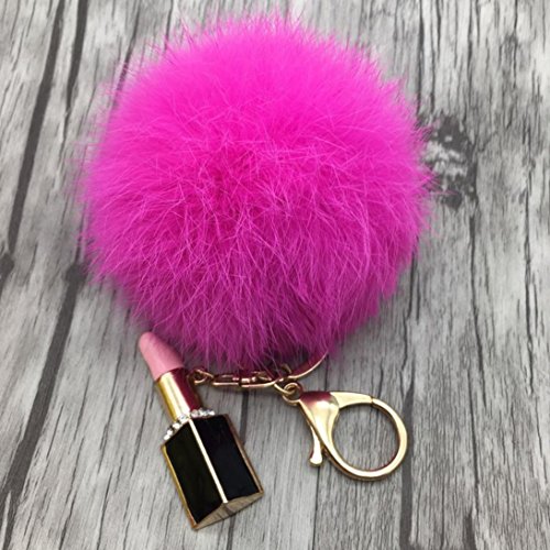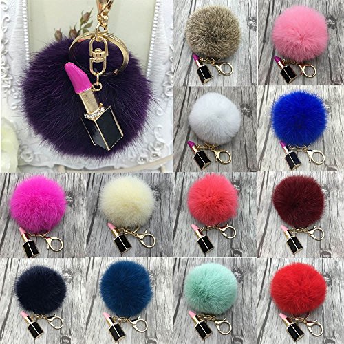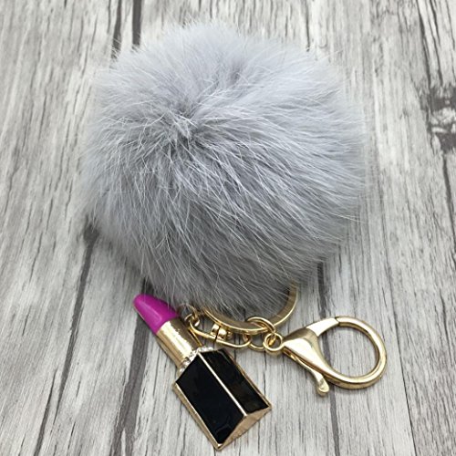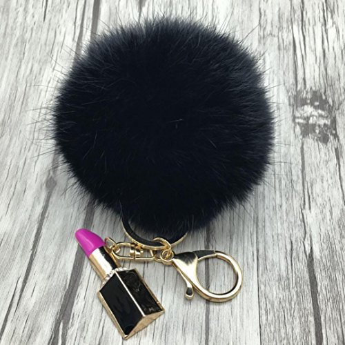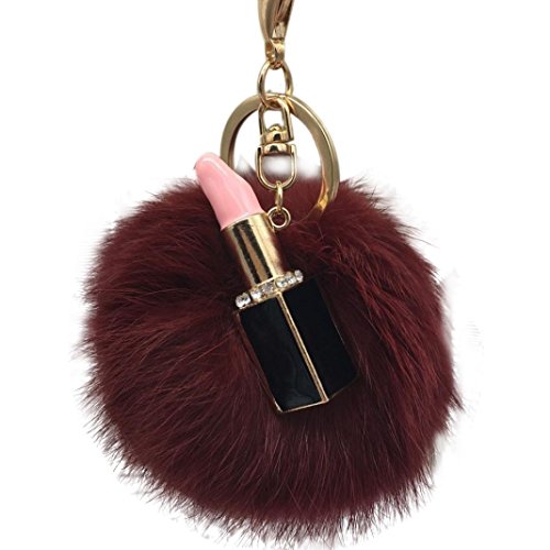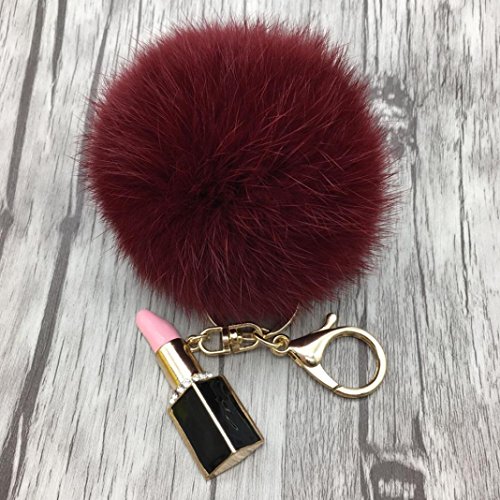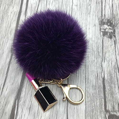 | (Sunward)/Accessories/Wallets, Money Key Organizers/DIRECT FROM USA/Sunward 2017 Genuine Fox Fur Keychain Bag Charm Gold Ring Fluffy Fur Ball With Lipstick Model |