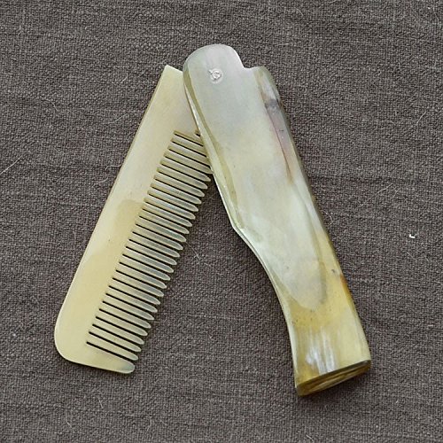 Hand carved of real horn, this comb is the great choice for your hair and beard care, it is in the perfect size for on the go brushing and for travel. It is perfectly fit your wallet when being fold in. Made of yak horn ,the end of static electricity unlike plastic combs, the horn comb does not trap electric charges.Feature