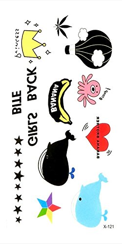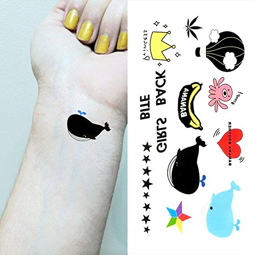 Oottati Small Cute Temporary Tattoo Whale Octopus Heart Banana Crown Hot Air Balloon (2 Sheets)