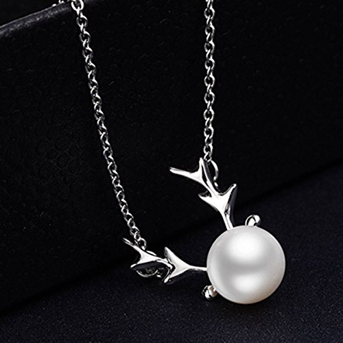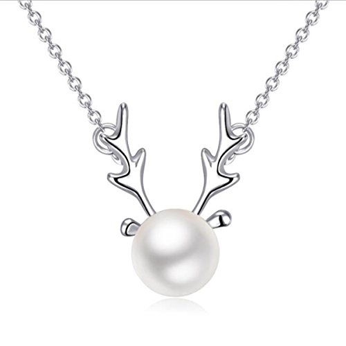 LittleB Simple clavicle Pendant choker Elk Antlers Pearl Necklace Christmas Gift.