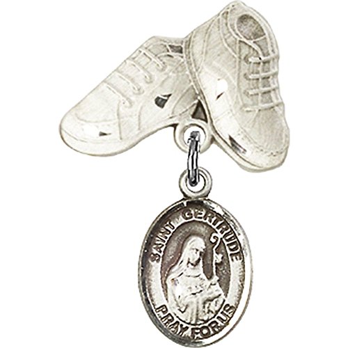-. Title : Sterling Silver Baby Badge with St. Gertrude of Nivelles Charm and Baby Boots Pin 1 X 5/8 inches