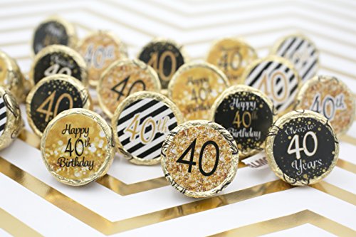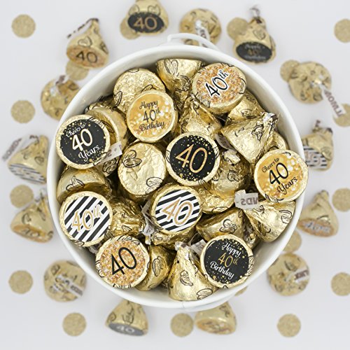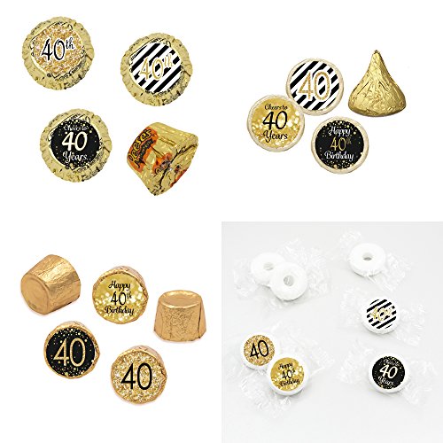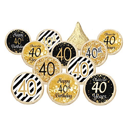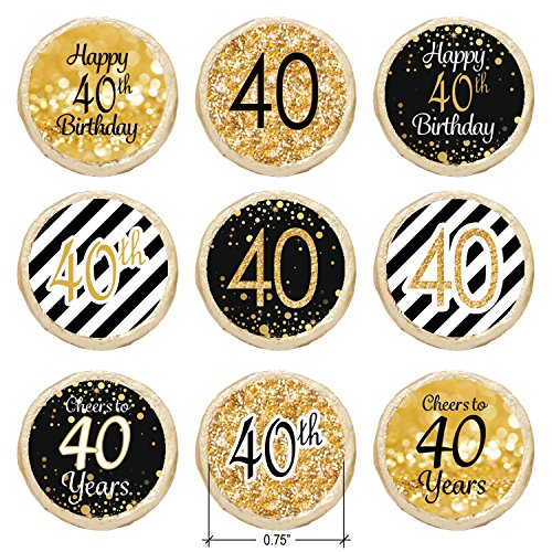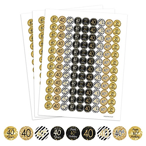 40th Birthday Party Favor Stickers - Gold and Black (Set of 324)