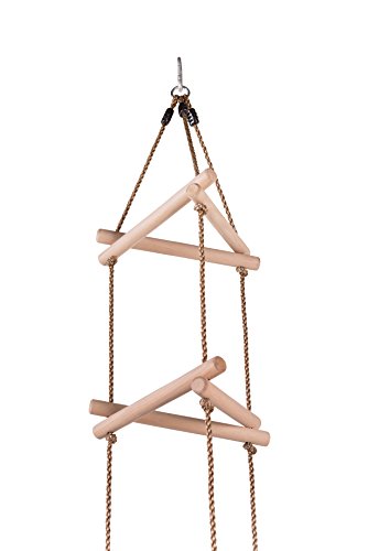 Studio : King Service Holding Inc Publisher : King Service Holding Inc Binding : Sports Product Description This Triangle rope ladder is a unique climbing structure which adds a 'twist' to your play set. The single swing hanger attachment allows for slight pivoting action, Promoting core strength and endurance in children. The Triangle rope ladder comes fully assembled and can be easily attached to a frame, Tree or ceiling for many hours of fun for the entire family! it features strong PE ropes and heavy duty wooden dowels for a secure climb. This ladder not only adds excitement and lengthens playtime, but also helps build dexterity and muscle while improving stamina in children. The fun with this swing is limitless, as kids climb to their hearts content. 0