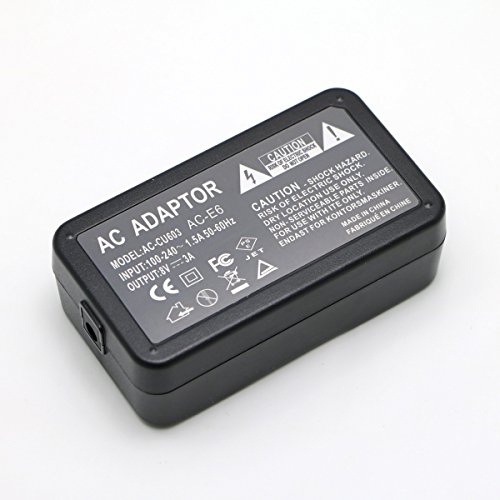 Our ACK-E6 replacement AC Power Adapter is designed to supply uninterrupted power for your camera while downloading pictures to your computer, for extended work in a studio, or while viewing images while connected to your TV or VCR. It is compatible with the following Canon DSLR cameras: