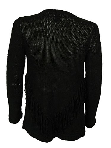 Product DescriptionCardigan features knit fabric, long sleeves, fringe trim and open front-no closure.0