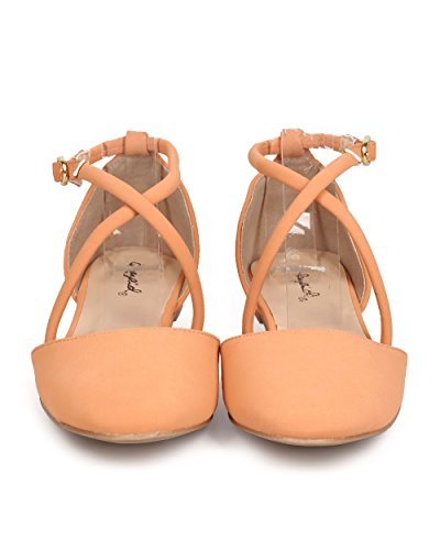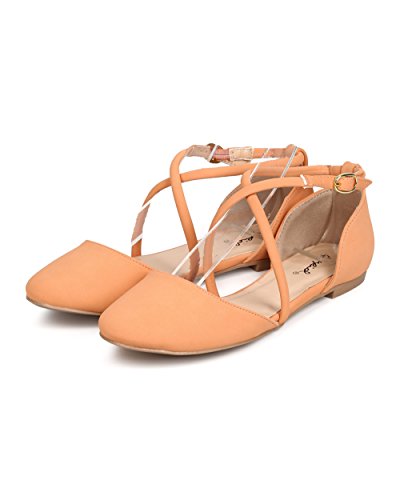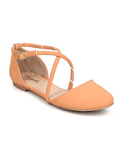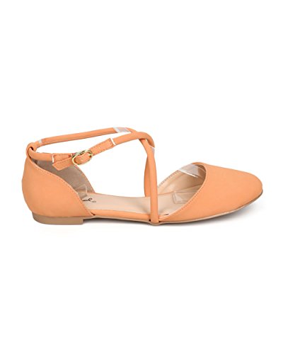 Qupid FK17 Women Nubuck d'Orsay Cross Strap Flat - melon