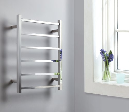 - Polished chrome finish stainless steel towel warmer with 6 electric warming towel bars