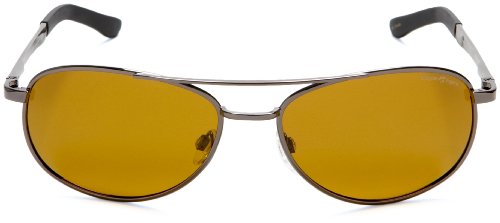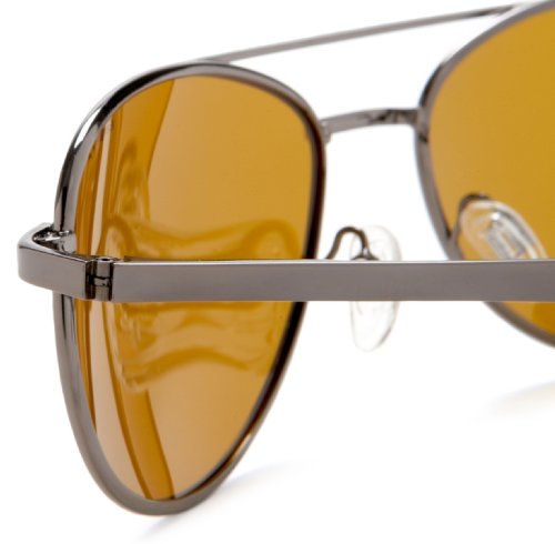 STYLISH: Gunmetal stainless aviator sunglasses with brow bar and scratch-resistant gold brown polycarbonate lenses Lens: W 62 mm H 42 mm Bridge: 20 mm Arm: 140 mm Includes a sleek black storage case