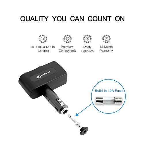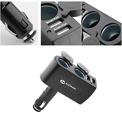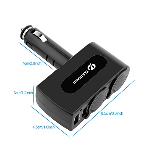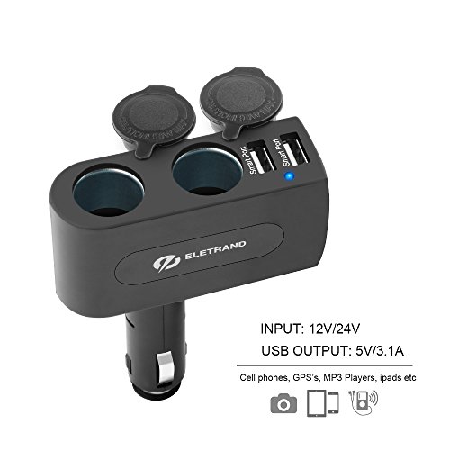 USB Car Charger, Eletrand 2-Socket Car Cigarette Lighter Power Adapter with 2 USB Charging Ports 15.5W 3.1A for Mobile Phones, Tablets, MP3 Players, GPS etc | Built-in 10A Fuse, Black