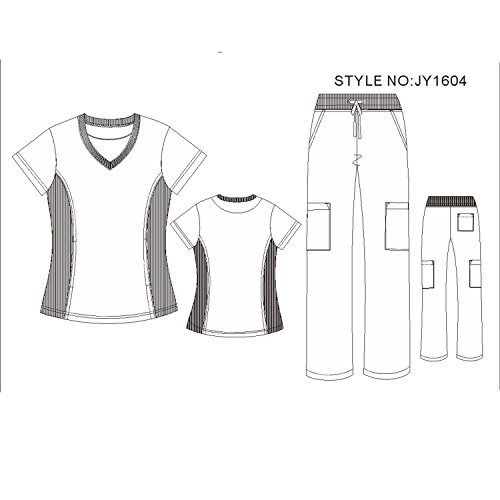 Pandamed Stretch V Neck Nursing Scrubs Set Rib Panel Women Scrubs Medical Uniforms JY1604